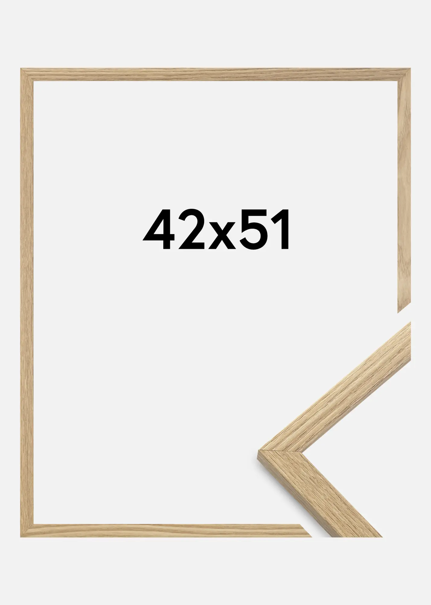 A moldura é feita de material MDF com uma superfície folheada em carvalho e tem um perfil de moldura fino de 14 mm. Há bastante espaço para complementar suas imagens com um passe-partout luxuoso, graças à profundidade interna da moldura de 12 mm.