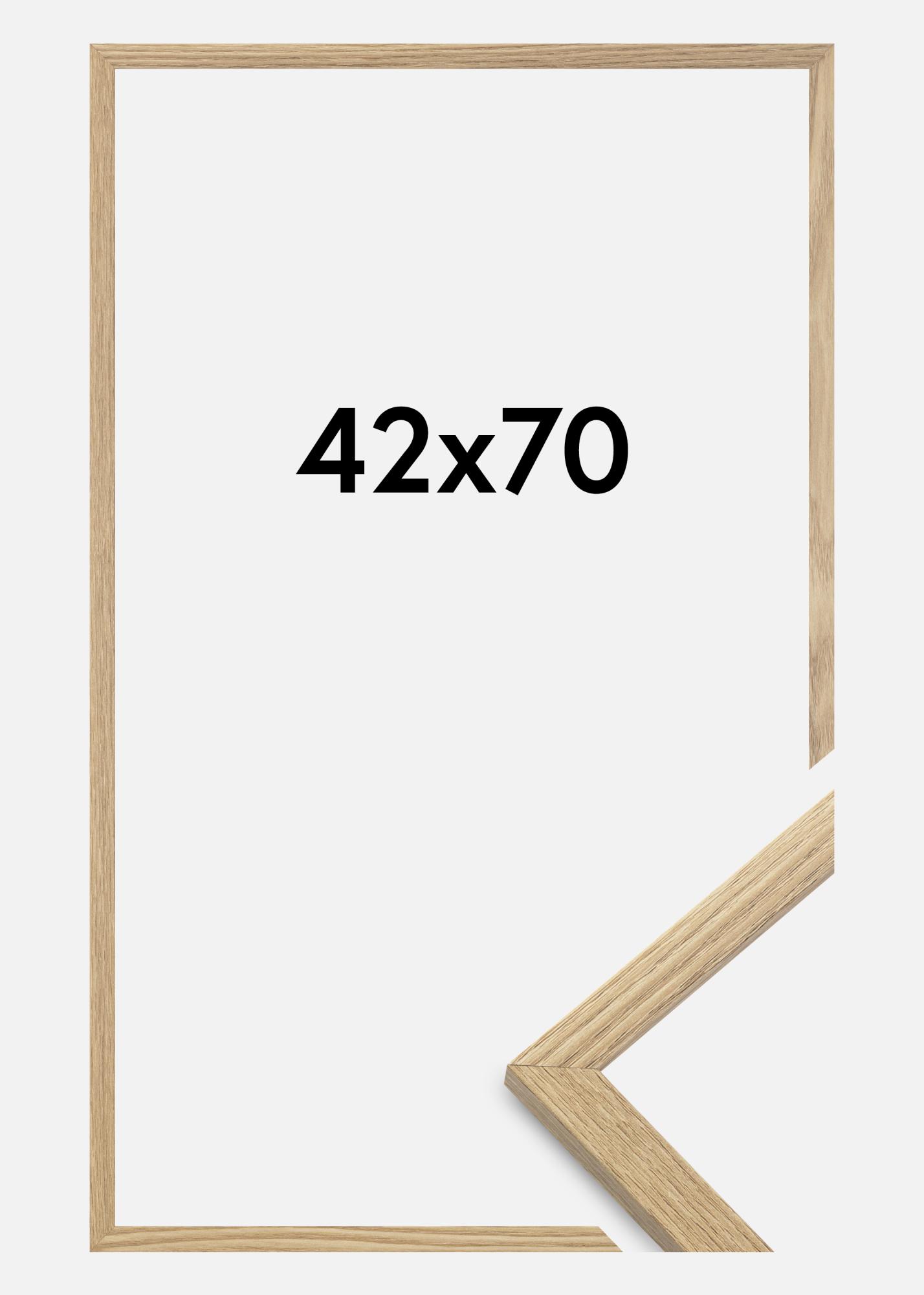 A moldura é feita de material MDF com uma superfície folheada em carvalho e tem um perfil de moldura fino de 14 mm. Há bastante espaço para complementar suas imagens com um passe-partout luxuoso, graças à profundidade interna da moldura de 12 mm.