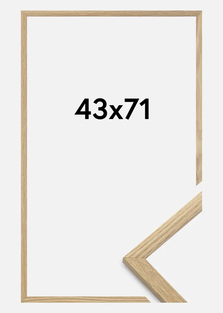 A moldura é feita de material MDF com uma superfície folheada em carvalho e tem um perfil de moldura fino de 14 mm. Há bastante espaço para complementar suas imagens com um passe-partout luxuoso, graças à profundidade interna da moldura de 12 mm.