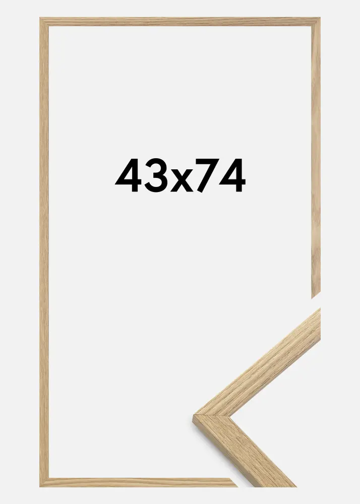 A moldura é feita de material MDF com uma superfície folheada em carvalho e tem um perfil de moldura fino de 14 mm. Há bastante espaço para complementar suas imagens com um passe-partout luxuoso, graças à profundidade interna da moldura de 12 mm.
