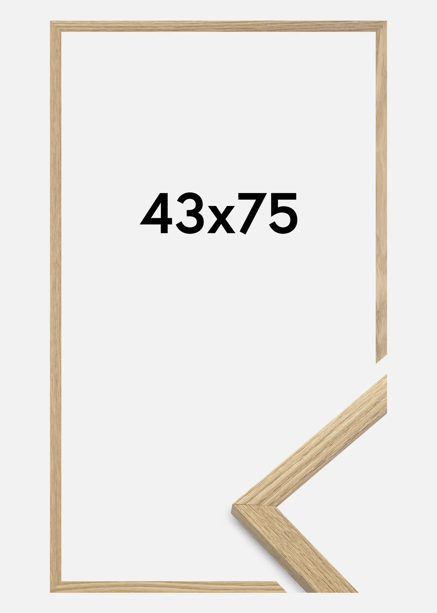 A moldura é feita de material MDF com uma superfície folheada em carvalho e tem um perfil de moldura fino de 14 mm. Há bastante espaço para complementar suas imagens com um passe-partout luxuoso, graças à profundidade interna da moldura de 12 mm.