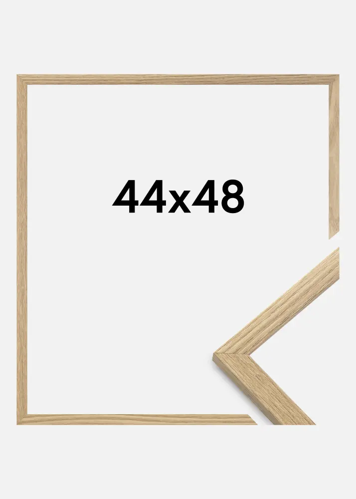 A moldura é feita de material MDF com uma superfície folheada em carvalho e tem um perfil de moldura fino de 14 mm. Há bastante espaço para complementar suas imagens com um passe-partout luxuoso, graças à profundidade interna da moldura de 12 mm.