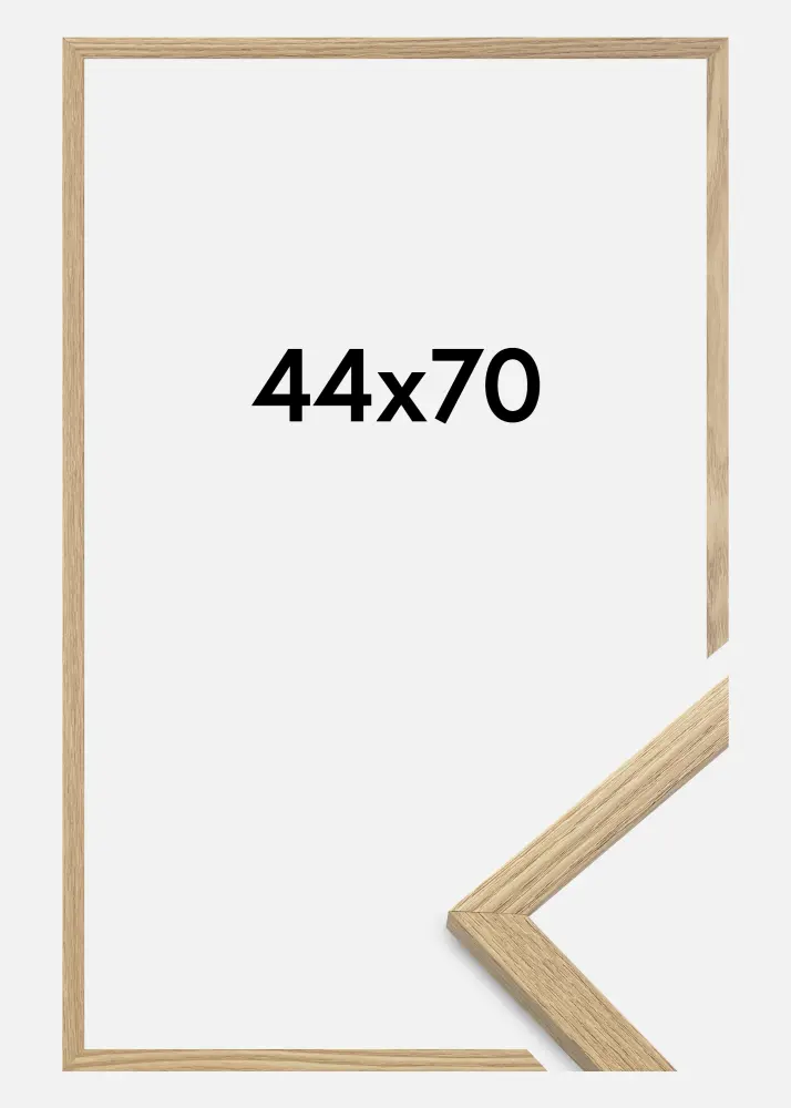 A moldura é feita de material MDF com uma superfície folheada em carvalho e tem um perfil de moldura fino de 14 mm. Há bastante espaço para complementar suas imagens com um passe-partout luxuoso, graças à profundidade interna da moldura de 12 mm.