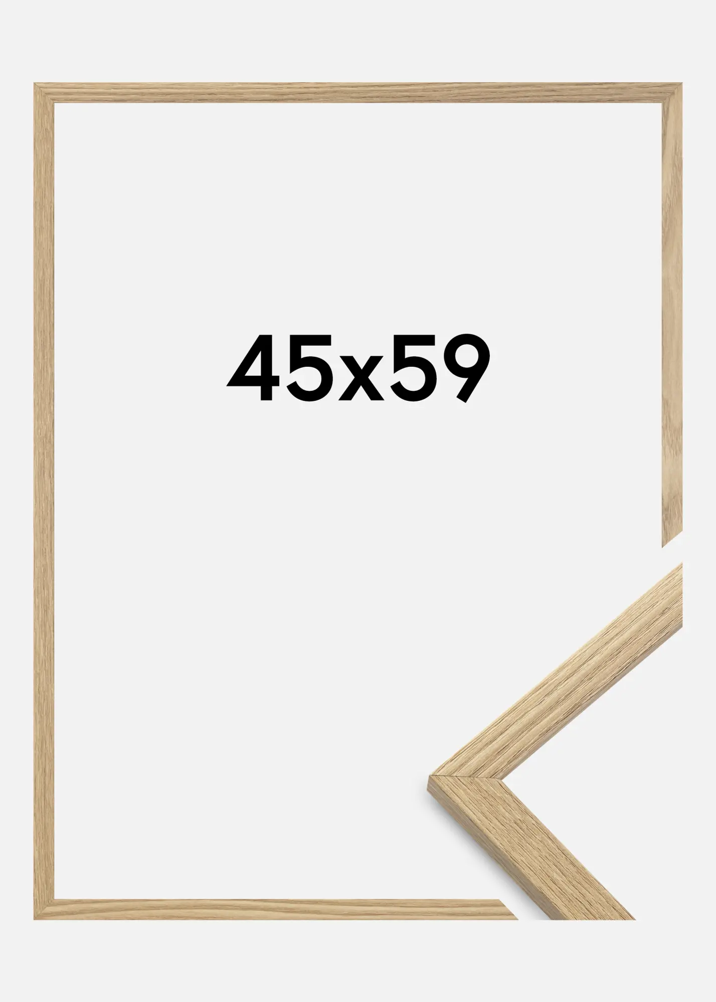 A moldura é feita de material MDF com uma superfície folheada em carvalho e tem um perfil de moldura fino de 14 mm. Há bastante espaço para complementar suas imagens com um passe-partout luxuoso, graças à profundidade interna da moldura de 12 mm.