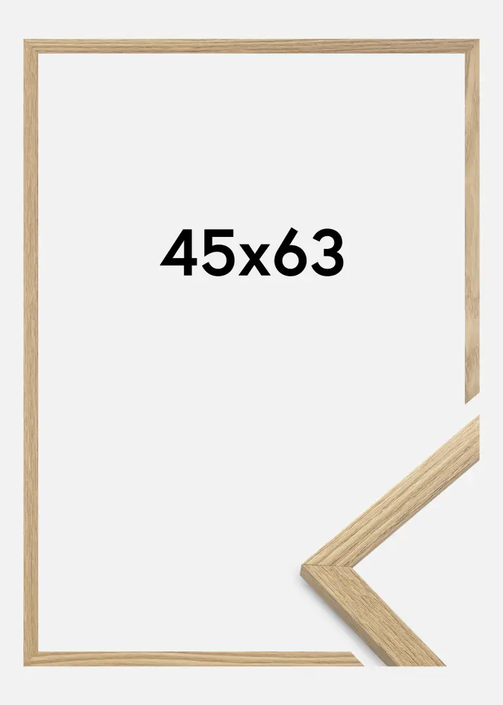 A moldura é feita de material MDF com uma superfície folheada em carvalho e tem um perfil de moldura fino de 14 mm. Há bastante espaço para complementar suas imagens com um passe-partout luxuoso, graças à profundidade interna da moldura de 12 mm.
