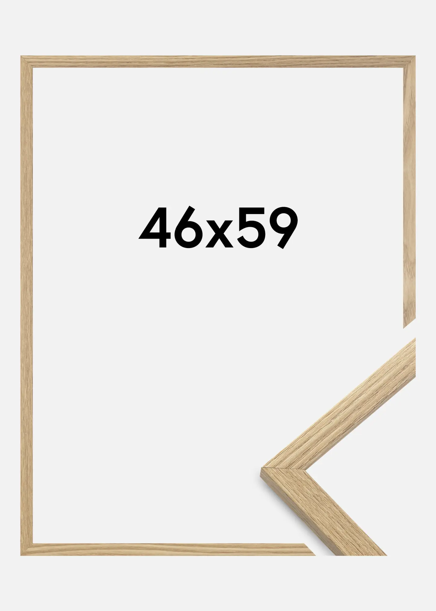 A moldura é feita de material MDF com uma superfície folheada em carvalho e tem um perfil de moldura fino de 14 mm. Há bastante espaço para complementar suas imagens com um passe-partout luxuoso, graças à profundidade interna da moldura de 12 mm.