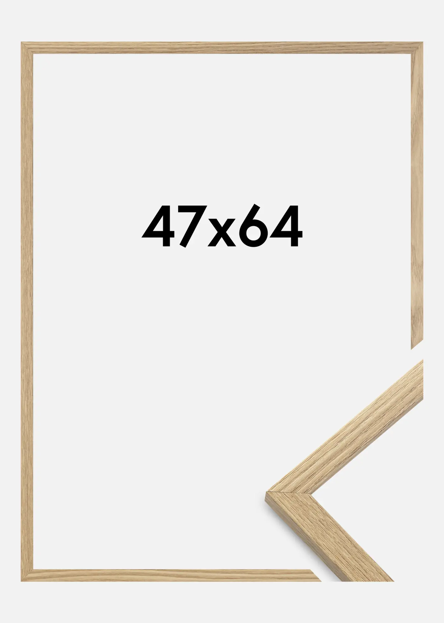 A moldura é feita de material MDF com uma superfície folheada em carvalho e tem um perfil de moldura fino de 14 mm. Há bastante espaço para complementar suas imagens com um passe-partout luxuoso, graças à profundidade interna da moldura de 12 mm.