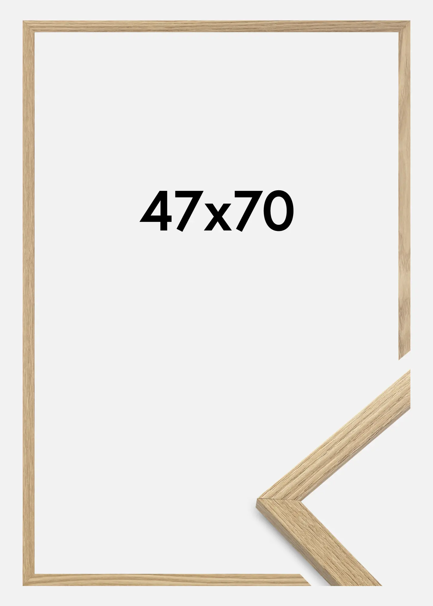 A moldura é feita de material MDF com uma superfície folheada em carvalho e tem um perfil de moldura fino de 14 mm. Há bastante espaço para complementar suas imagens com um passe-partout luxuoso, graças à profundidade interna da moldura de 12 mm.