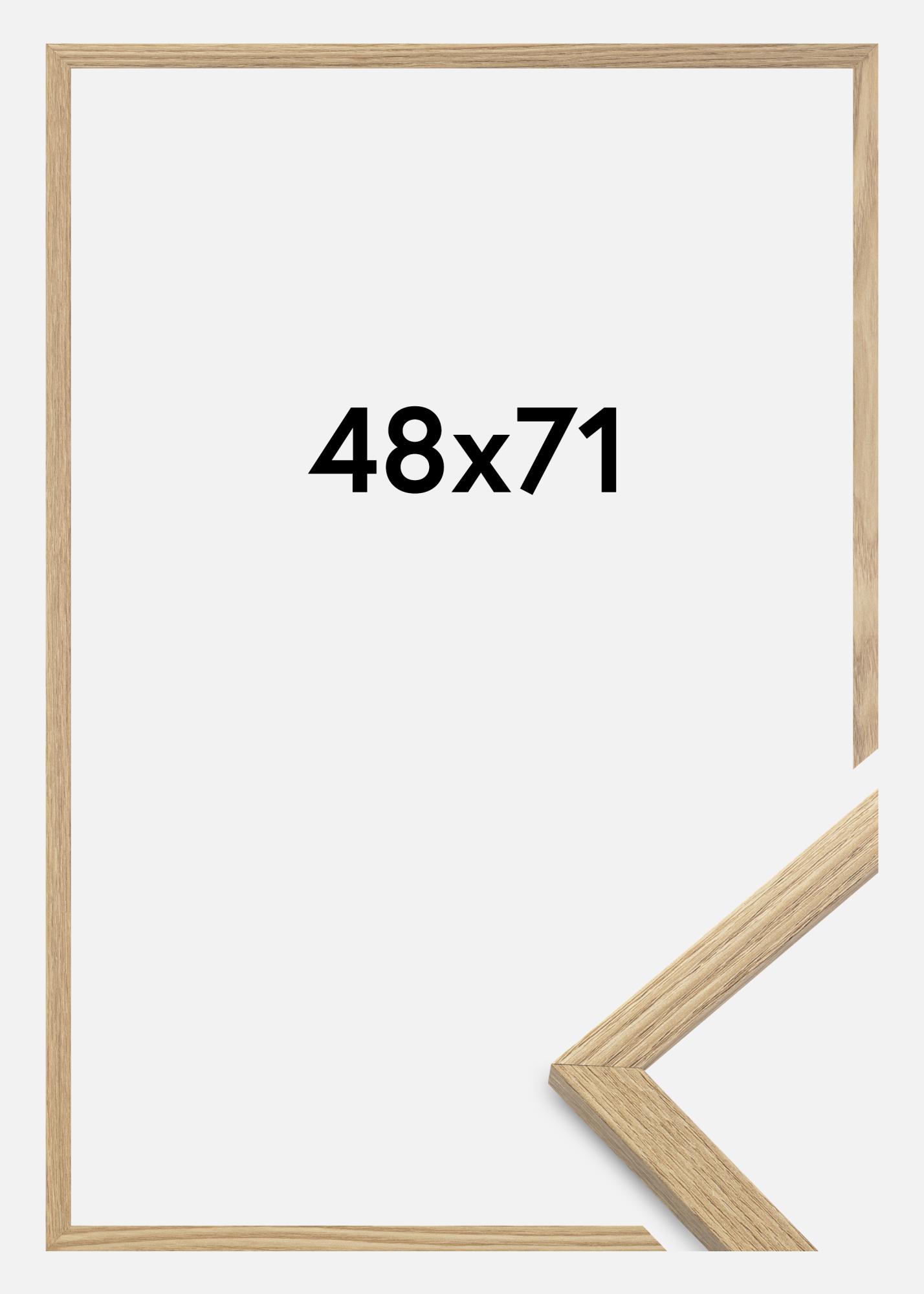 A moldura é feita de material MDF com uma superfície folheada em carvalho e tem um perfil de moldura fino de 14 mm. Há bastante espaço para complementar suas imagens com um passe-partout luxuoso, graças à profundidade interna da moldura de 12 mm.