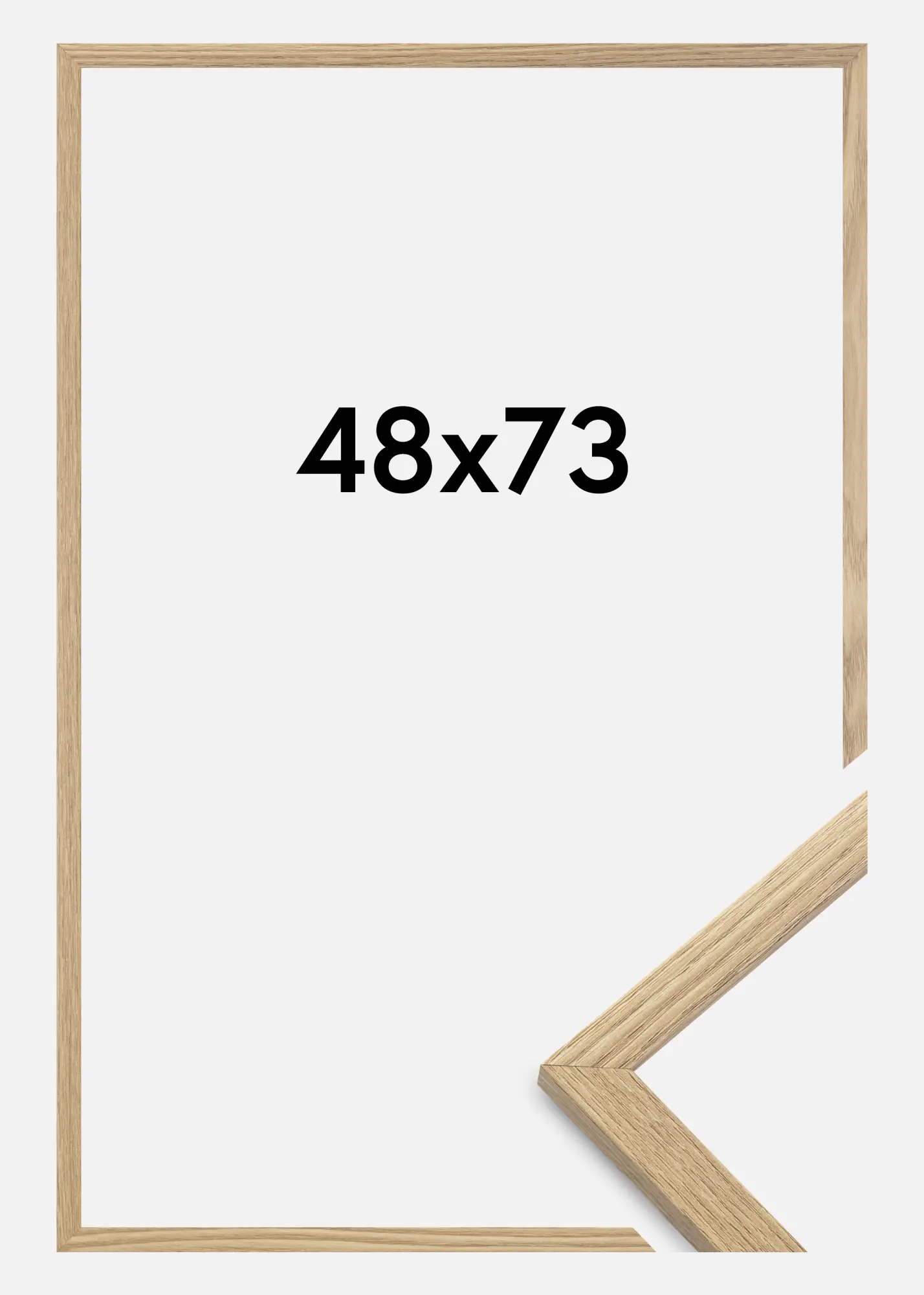 A moldura é feita de material MDF com uma superfície folheada em carvalho e tem um perfil de moldura fino de 14 mm. Há bastante espaço para complementar suas imagens com um passe-partout luxuoso, graças à profundidade interna da moldura de 12 mm.