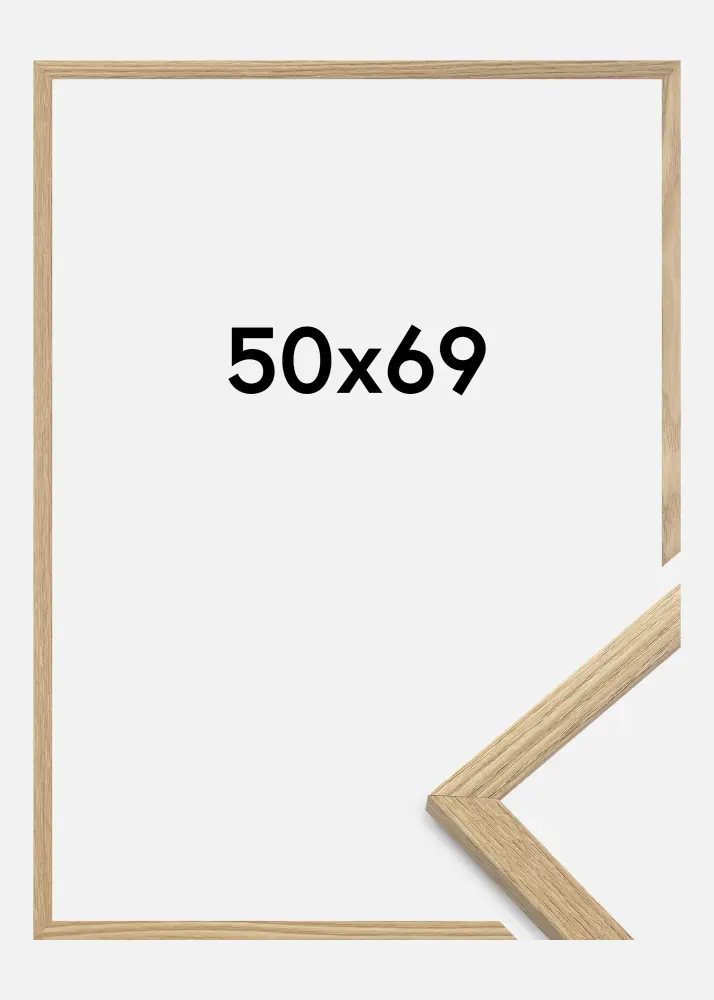 A moldura é feita de material MDF com uma superfície folheada em carvalho e tem um perfil de moldura fino de 14 mm. Há bastante espaço para complementar suas imagens com um passe-partout luxuoso, graças à profundidade interna da moldura de 12 mm.
