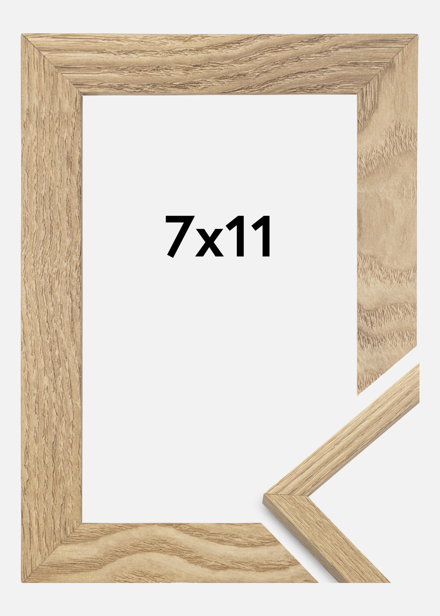 A moldura é feita de material MDF com uma superfície folheada em carvalho e tem um perfil de moldura fino de 14 mm. Há bastante espaço para complementar suas imagens com um passe-partout luxuoso, graças à profundidade interna da moldura de 12 mm.