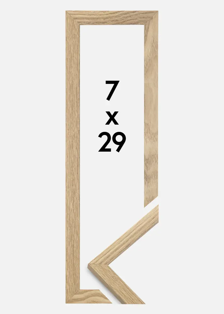 A moldura é feita de material MDF com uma superfície folheada em carvalho e tem um perfil de moldura fino de 14 mm. Há bastante espaço para complementar suas imagens com um passe-partout luxuoso, graças à profundidade interna da moldura de 12 mm.
