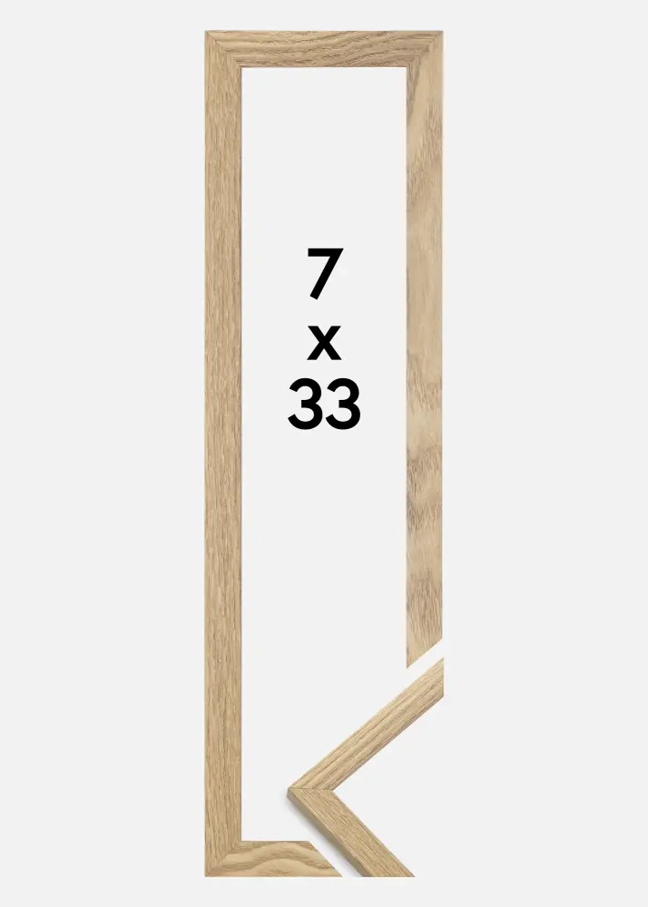A moldura é feita de material MDF com uma superfície folheada em carvalho e tem um perfil de moldura fino de 14 mm. Há bastante espaço para complementar suas imagens com um passe-partout luxuoso, graças à profundidade interna da moldura de 12 mm.