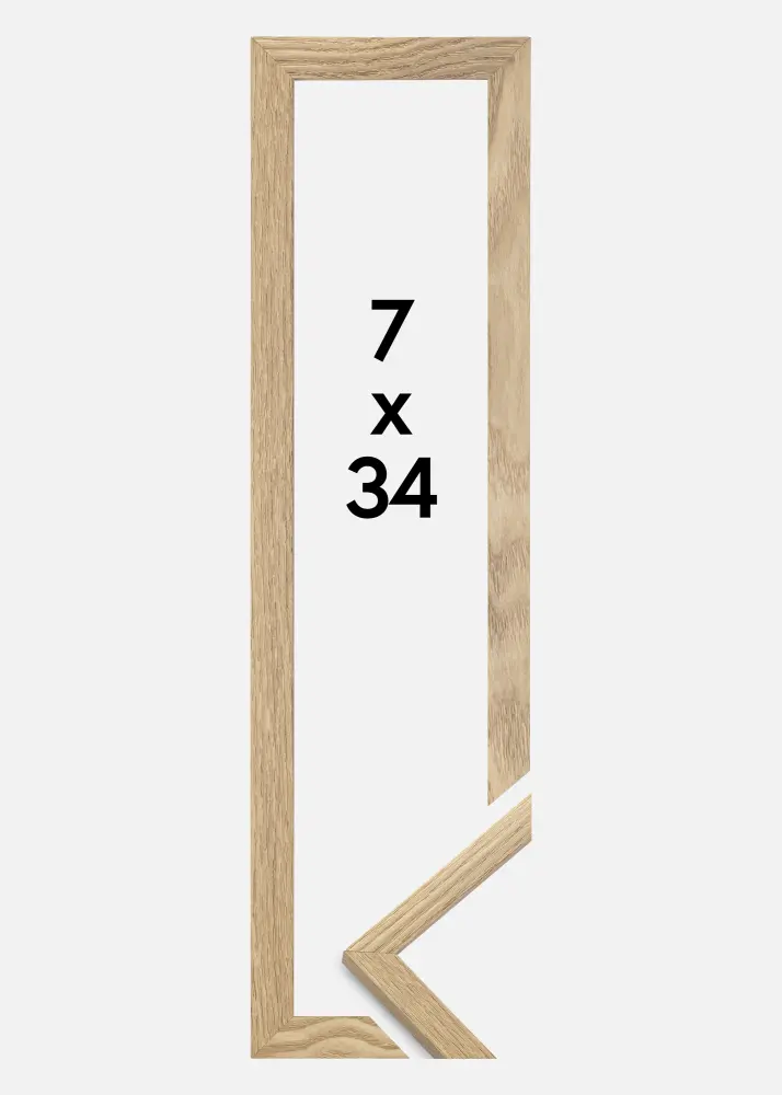 A moldura é feita de material MDF com uma superfície folheada em carvalho e tem um perfil de moldura fino de 14 mm. Há bastante espaço para complementar suas imagens com um passe-partout luxuoso, graças à profundidade interna da moldura de 12 mm.