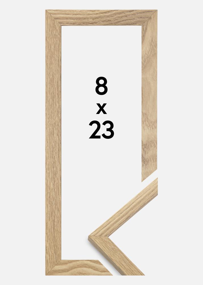 A moldura é feita de material MDF com uma superfície folheada em carvalho e tem um perfil de moldura fino de 14 mm. Há bastante espaço para complementar suas imagens com um passe-partout luxuoso, graças à profundidade interna da moldura de 12 mm.