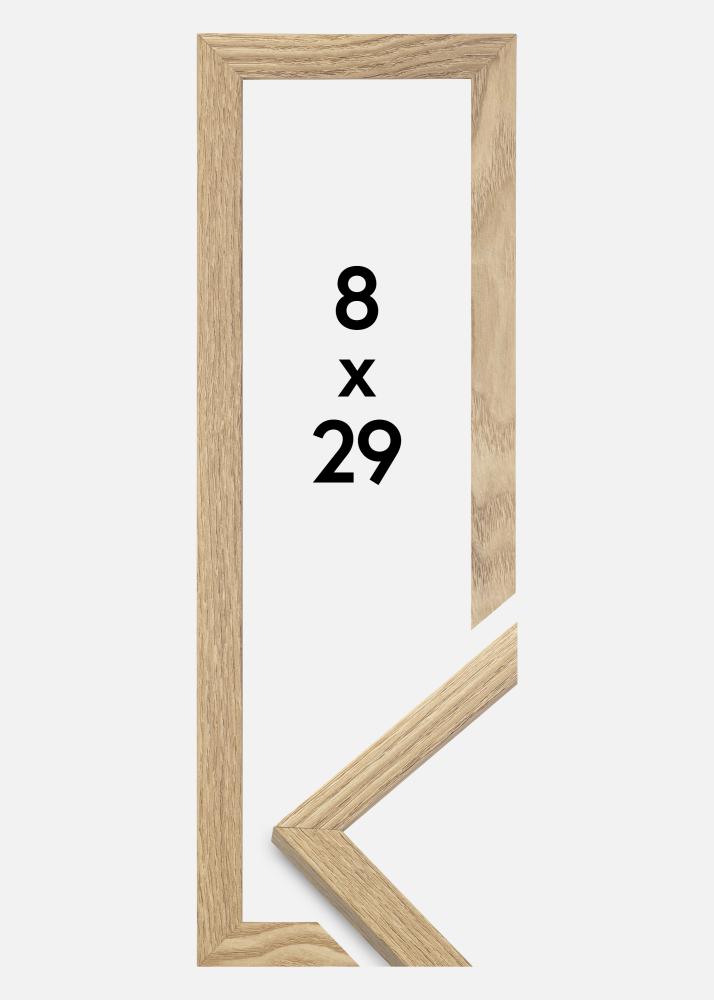 A moldura é feita de material MDF com uma superfície folheada em carvalho e tem um perfil de moldura fino de 14 mm. Há bastante espaço para complementar suas imagens com um passe-partout luxuoso, graças à profundidade interna da moldura de 12 mm.