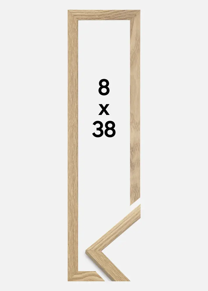 A moldura é feita de material MDF com uma superfície folheada em carvalho e tem um perfil de moldura fino de 14 mm. Há bastante espaço para complementar suas imagens com um passe-partout luxuoso, graças à profundidade interna da moldura de 12 mm.