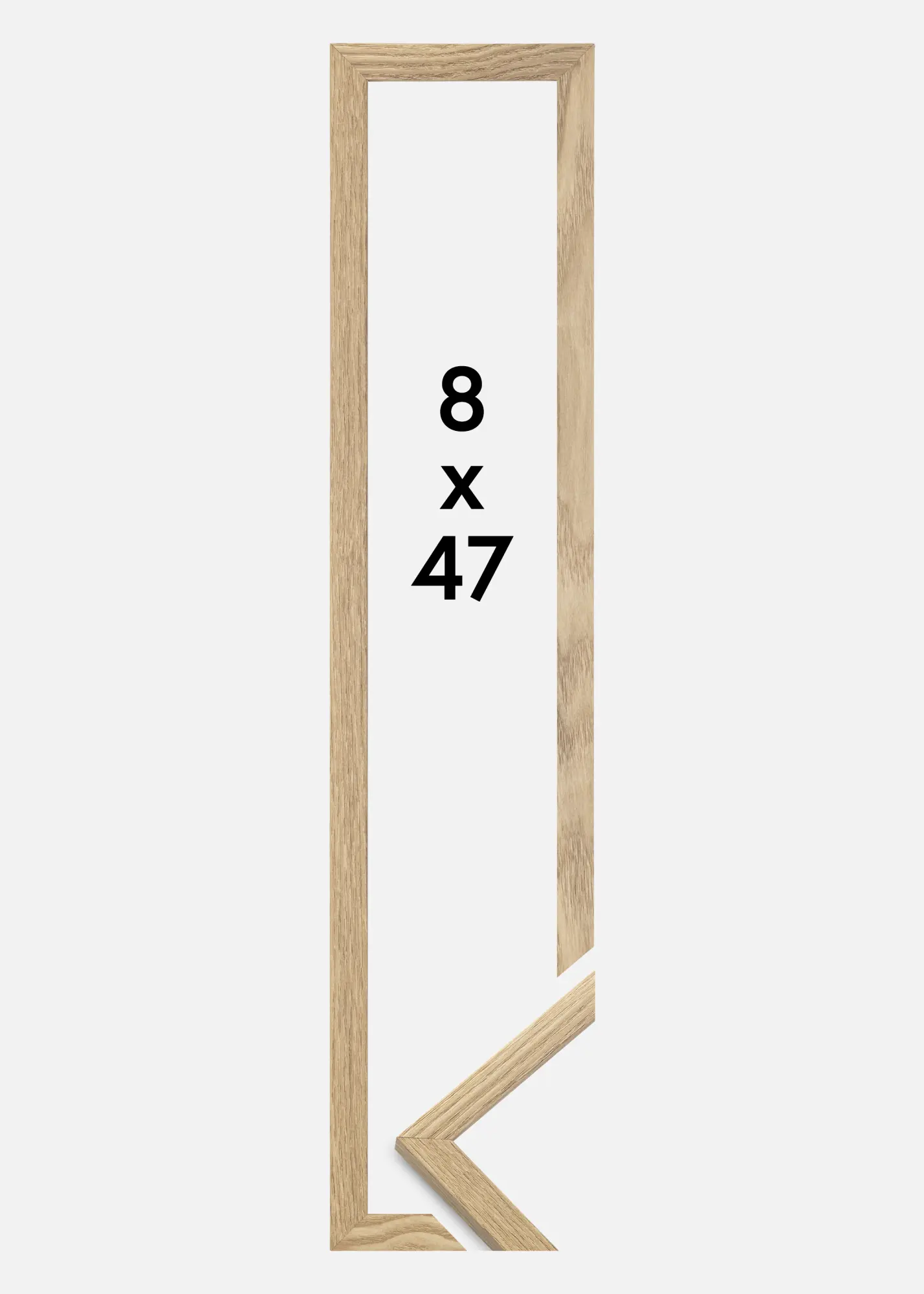 A moldura é feita de material MDF com uma superfície folheada em carvalho e tem um perfil de moldura fino de 14 mm. Há bastante espaço para complementar suas imagens com um passe-partout luxuoso, graças à profundidade interna da moldura de 12 mm.