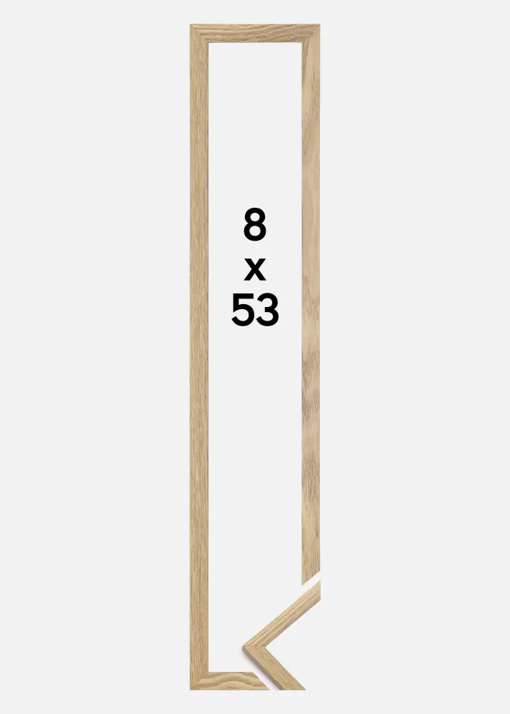 A moldura é feita de material MDF com uma superfície folheada em carvalho e tem um perfil de moldura fino de 14 mm. Há bastante espaço para complementar suas imagens com um passe-partout luxuoso, graças à profundidade interna da moldura de 12 mm.