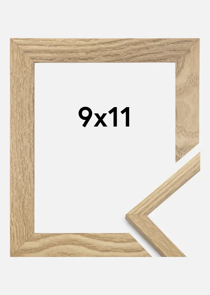 A moldura é feita de material MDF com uma superfície folheada em carvalho e tem um perfil de moldura fino de 14 mm. Há bastante espaço para complementar suas imagens com um passe-partout luxuoso, graças à profundidade interna da moldura de 12 mm.