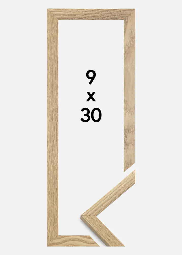 A moldura é feita de material MDF com uma superfície folheada em carvalho e tem um perfil de moldura fino de 14 mm. Há bastante espaço para complementar suas imagens com um passe-partout luxuoso, graças à profundidade interna da moldura de 12 mm.