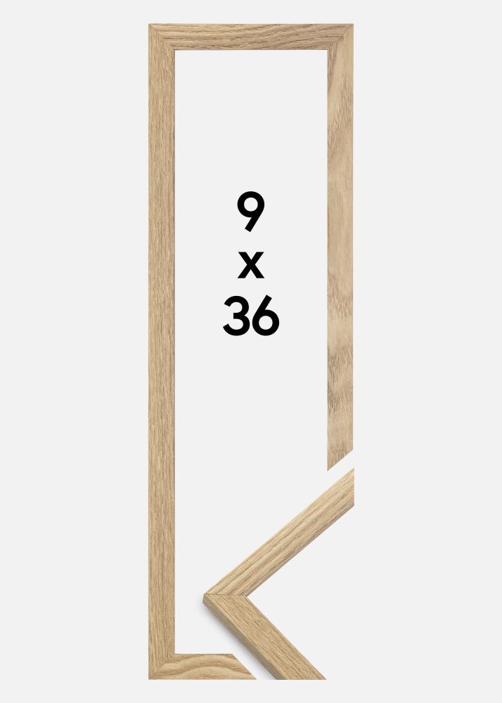 A moldura é feita de material MDF com uma superfície folheada em carvalho e tem um perfil de moldura fino de 14 mm. Há bastante espaço para complementar suas imagens com um passe-partout luxuoso, graças à profundidade interna da moldura de 12 mm.