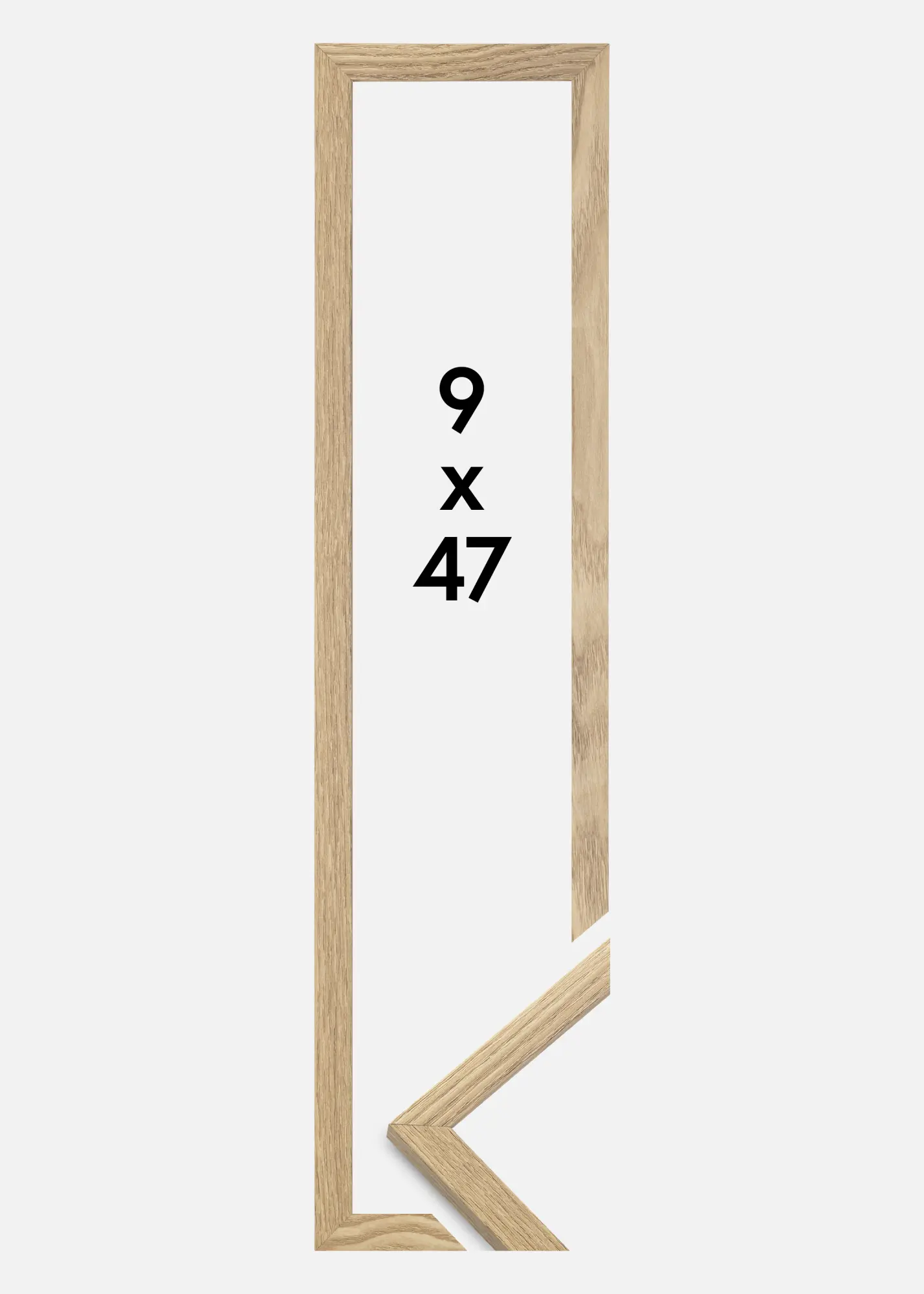 A moldura é feita de material MDF com uma superfície folheada em carvalho e tem um perfil de moldura fino de 14 mm. Há bastante espaço para complementar suas imagens com um passe-partout luxuoso, graças à profundidade interna da moldura de 12 mm.