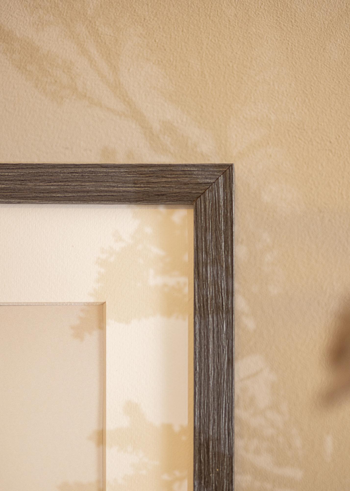 Esta moldura possui uma lista de 21 mm de largura e uma profundidade de 38 mm, o que lhe confere uma sensação robusta e estável. O acabamento fosco realça a sensação autêntica de madeira e destaca o caráter rústico da moldura. As linhas retas contribuem para uma forma elegante e minimalista que se adapta à maioria dos estilos de decoração.