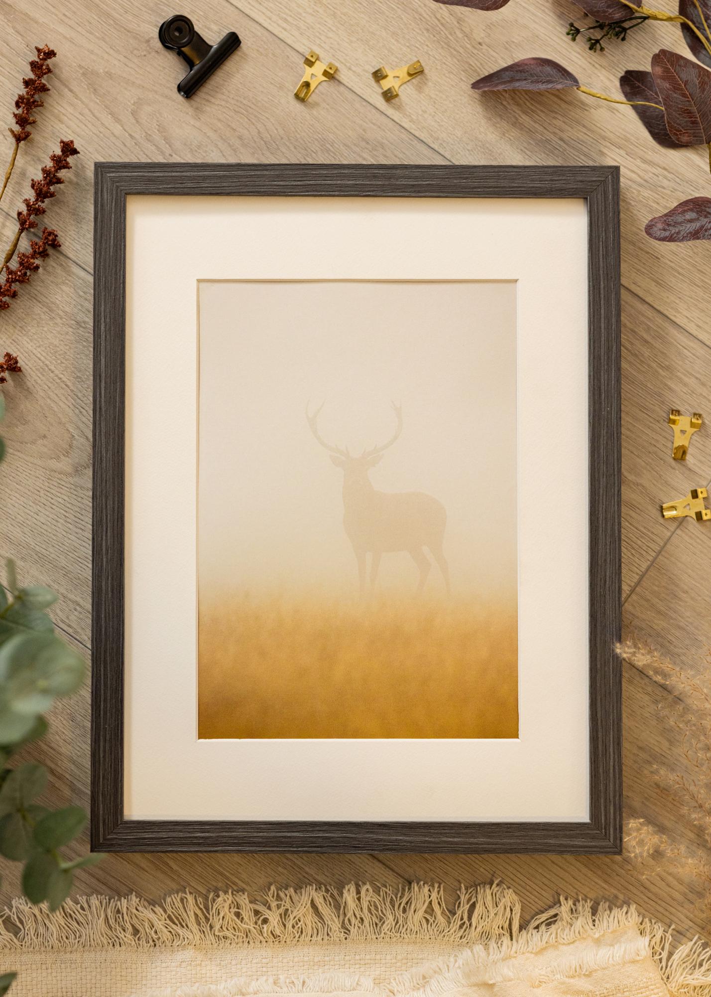 Wood Selection Grey I é uma moldura feita sob medida que oferece uma combinação perfeita de estilo e funcionalidade. Com sua cor cinza e acabamento em madeira escura, esta moldura fotográfica proporciona um toque sofisticado às suas fotos e obras de arte. Os veios naturais da madeira correm ao longo das bordas, criando uma dinâmica visual que capta o olhar.
