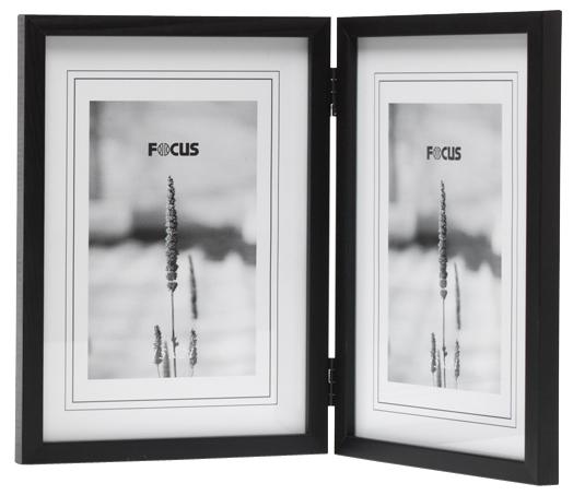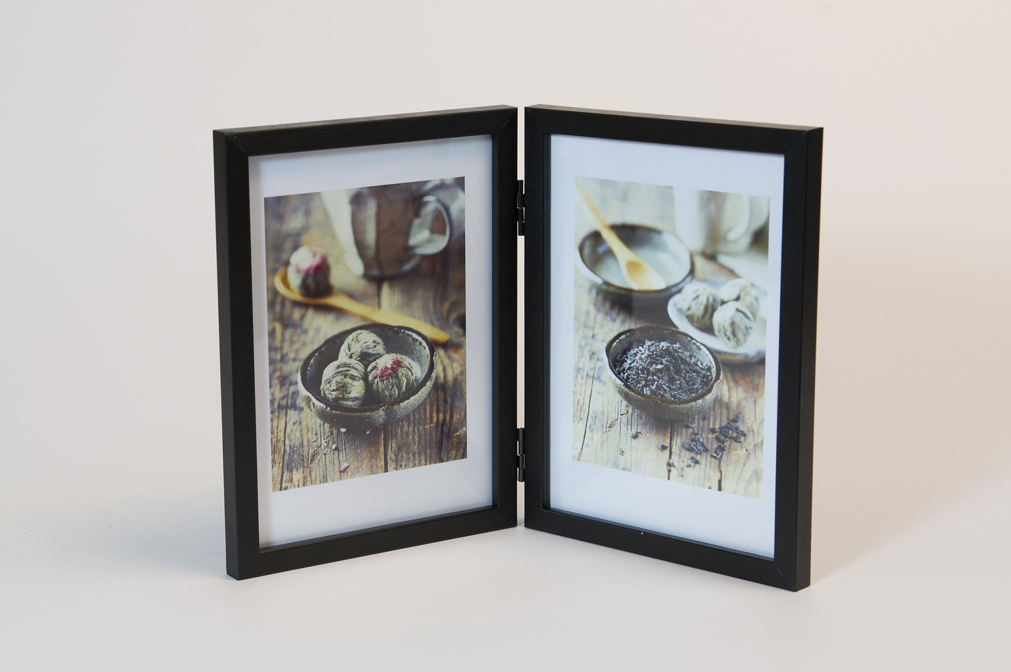 Rock Preto Moldura dobrável tem espaço para 2 fotografias. A moldura tem um perfil moderno e quadrado feito de madeira pintada de preto.