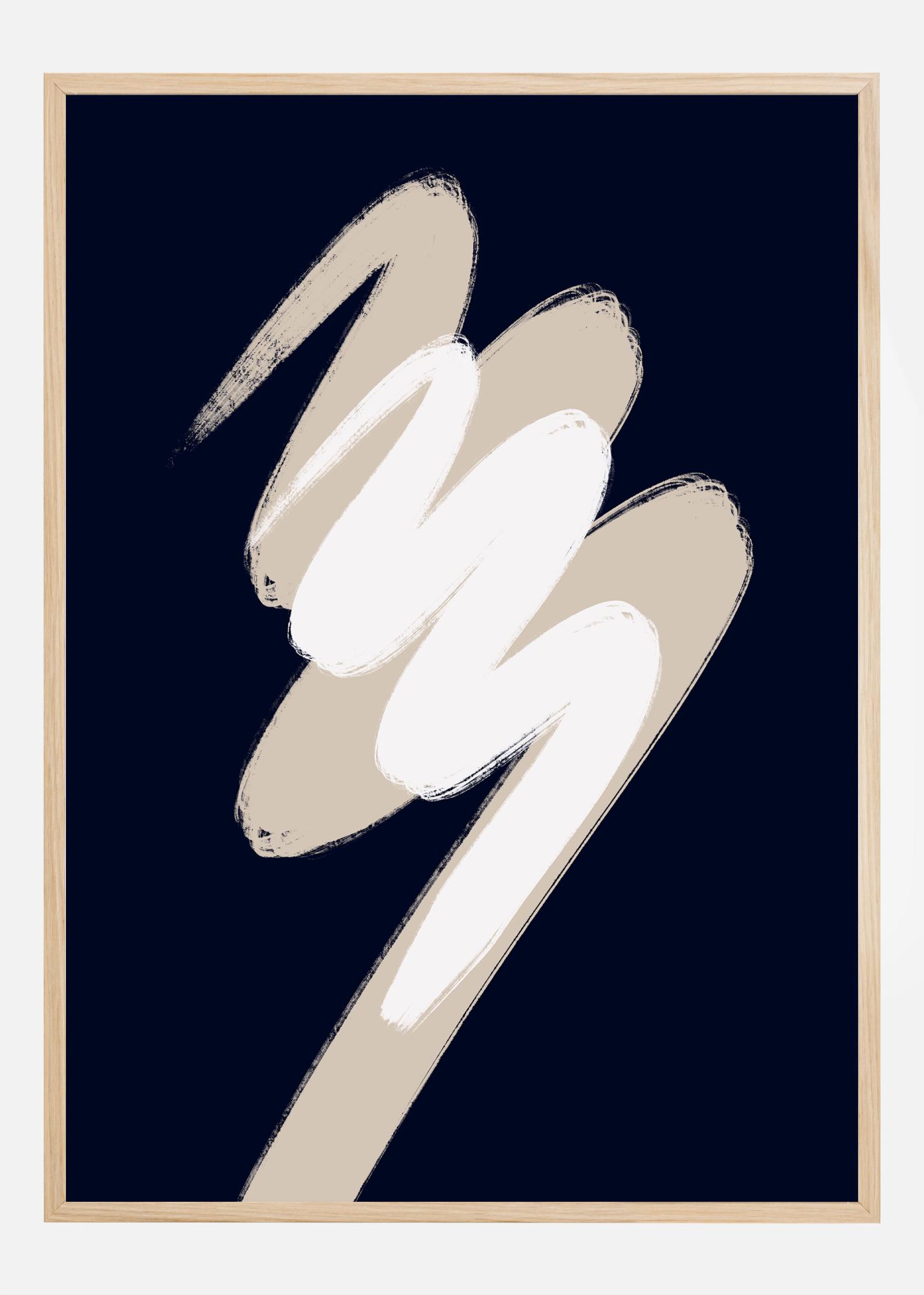 Este pôster abstrato e moderno emana uma sensação de liberdade artística e criatividade. As pinceladas ousadas em branco e bege varrem o fundo azul profundo, proporcionando um forte contraste visual que captura e mantém a atenção do observador. O motivo dá uma impressão de movimento e espontaneidade, característico da direção expressiva na arte abstrata.