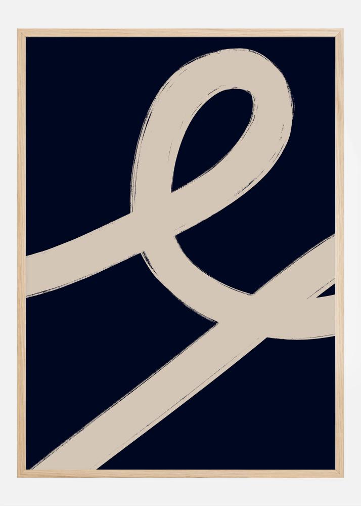 Este pôster minimalista e contemporâneo captura a essência do design escandinavo com sua composição limpa e simples. Uma grande linha sinuosa bege contrasta com um fundo azul profundo, criando uma imagem que é ao mesmo tempo calmante e visualmente interessante. O contraste entre os dois elementos é sofisticado e proporciona um forte efeito gráfico que destaca a beleza da arte abstrata.