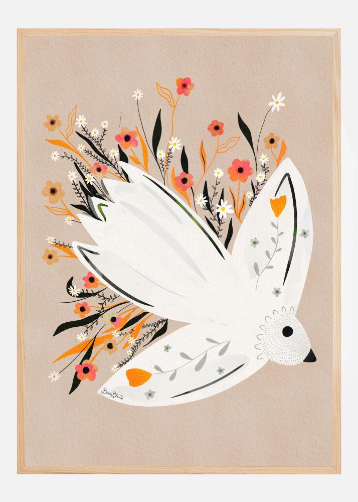 Seagull in Flowers illustration Póster (21x29.7 cm (A4))