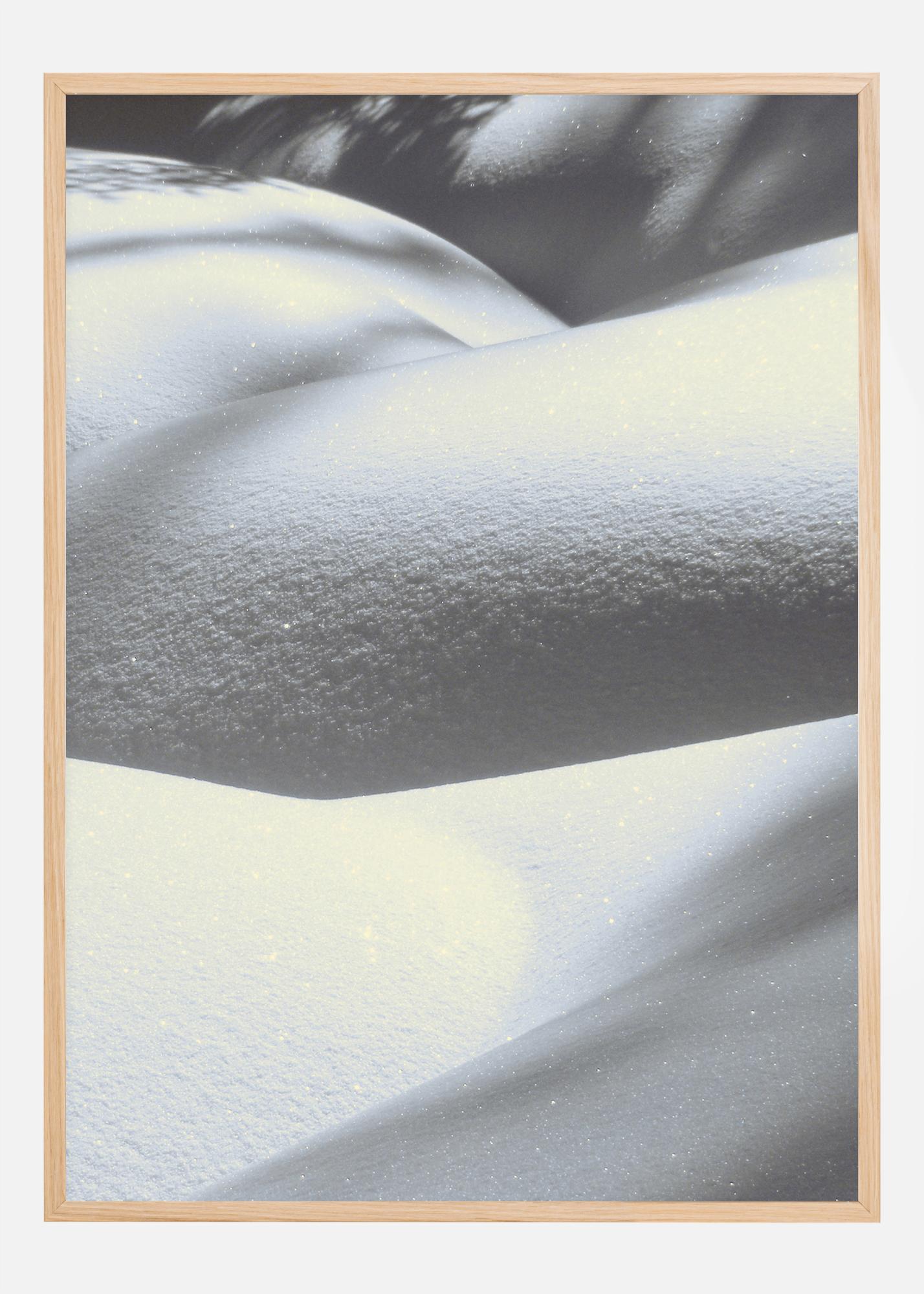 Um póster branco com neve em colinas ondulantes. Esta imagem é uma mistura de branco e cinzento quando a neve rola sobre a paisagem e cria diferentes padrões e formas. A neve esconde tudo e deixa tudo para a sua imaginação, assim como esta imagem.