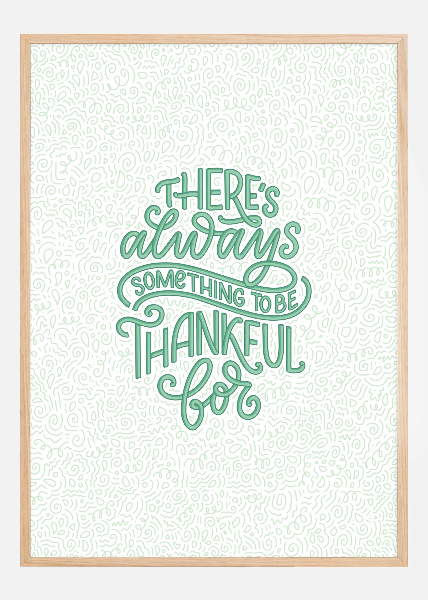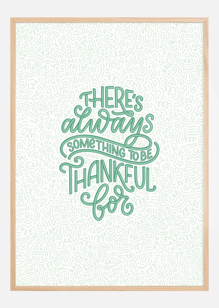 Este cartaz inspirador é um convite ao otimismo e à gratidão, perfeito para espalhar boas vibrações na sua casa ou local de trabalho. Com um texto vibrante em verde que diz "There's always something to be thankful for" sobre um fundo branco detalhado cheio de linhas e padrões intrincados, incita uma visão positiva da vida e reflexão.