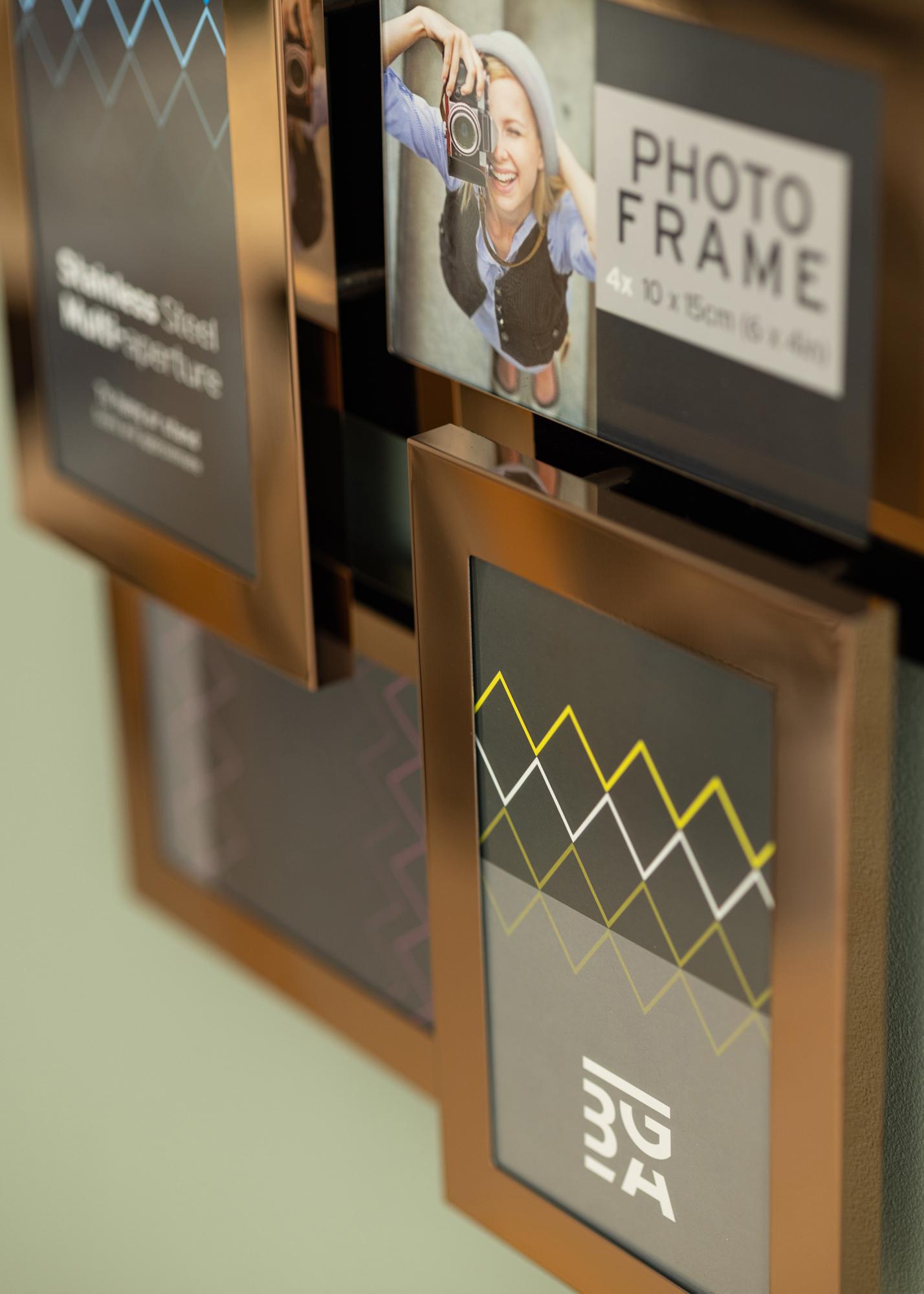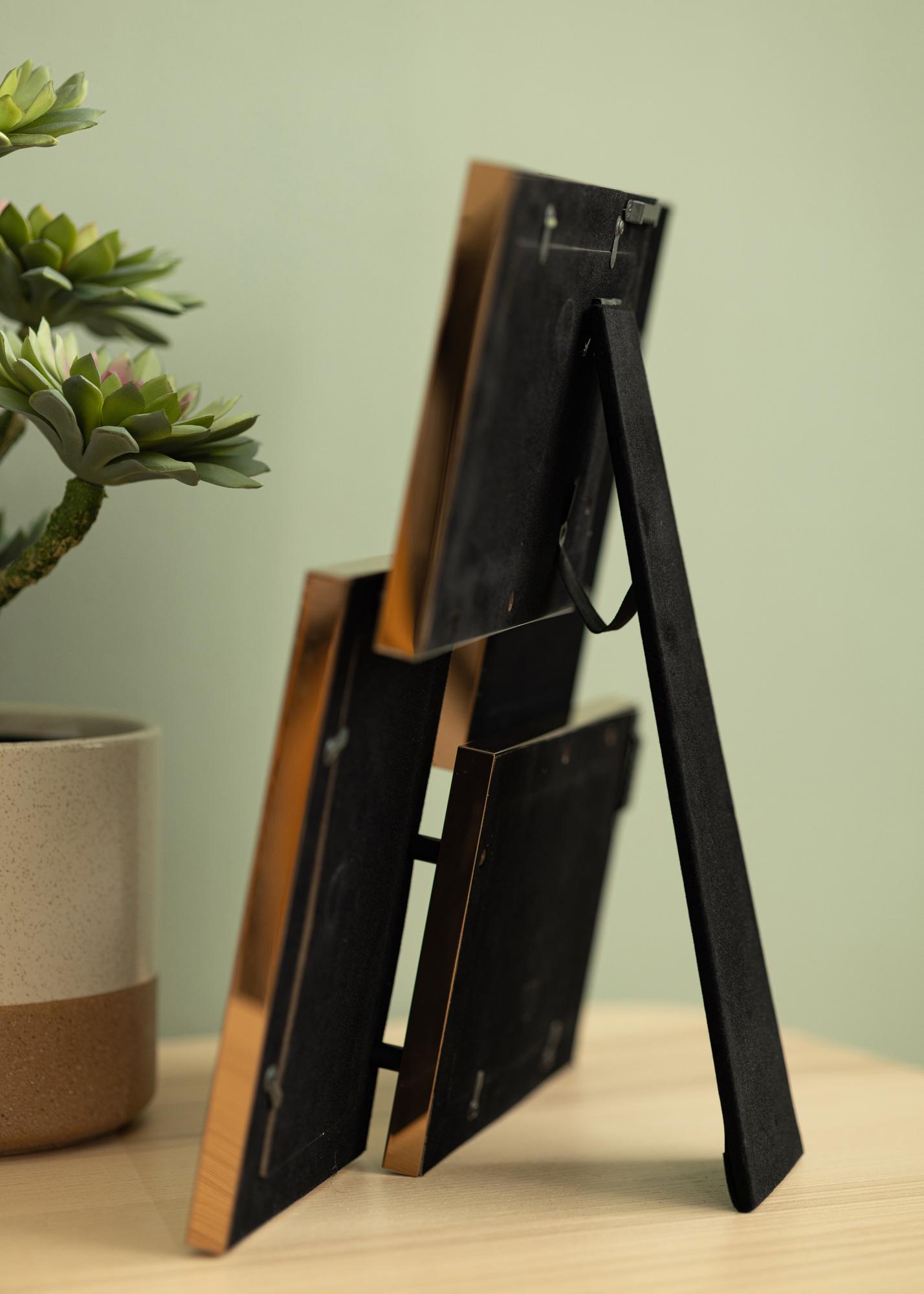 Esta moldura de metal tem um tom de ouro rosado na moda, que, juntamente com a superfície brilhante, confere à moldura um visual moderno. Na parte de trás, há quatro suportes que mantêm cada foto no lugar. As placas traseiras são mantidas no lugar por clipes de metal giratórios. Para inserir suas fotos, gire os clipes, solte as placas traseiras e Coloque suas fotos ao lado do vidro da moldura. Rápido e fácil!
