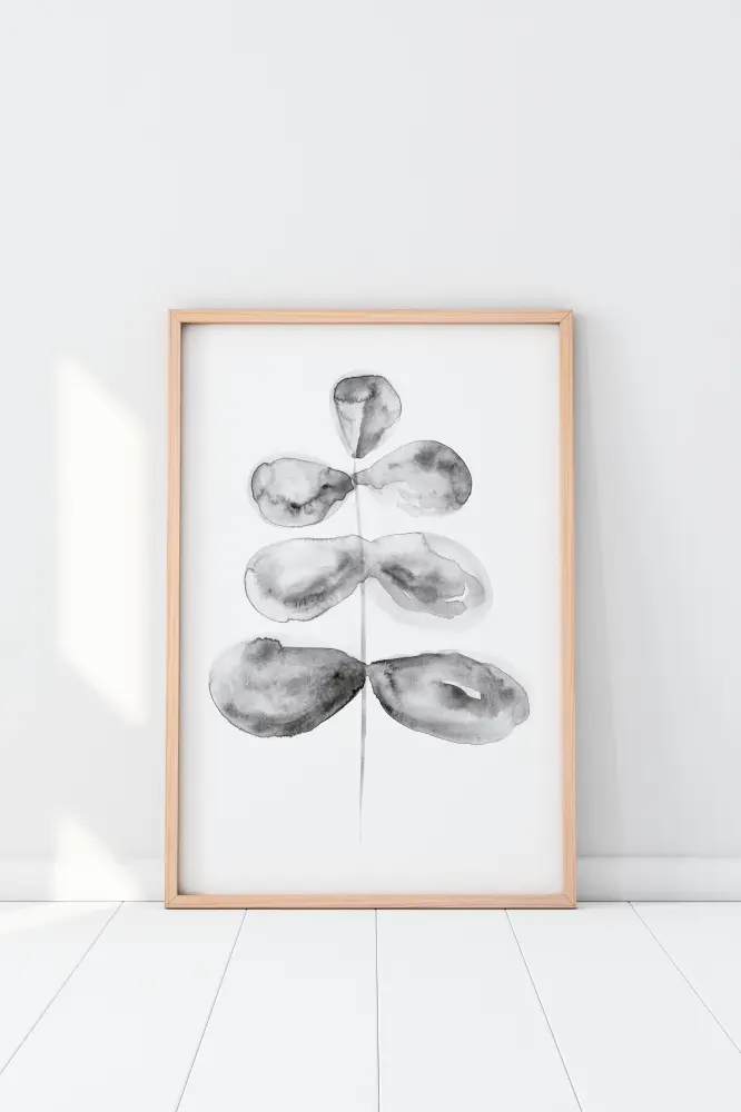 Uma aquarela botânica elegante em tons de cinzento suave criada pela artista EMELIEmaria. Um póster simples e minimalista que combina muito bem com o seu par, Summer Calm.