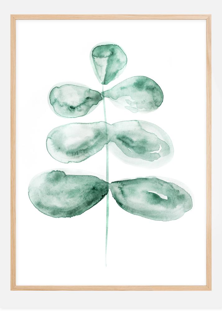 Um simples póster com folhas azul-esverdeadas pintadas com aquarela. A cor se expande em cada folha, deixando as bordas suaves e desfocadas para dar uma aparência artística. Um fino caule une as folhas em uma totalidade coesa nesta pintura elegante. Combine com cores pastel suaves para completar a sensação de verão.