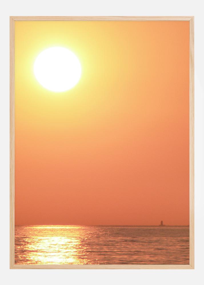 Uma imagem em close-up de um dente-de-leão com um pôr-do-sol vermelho brilhante fluindo através dele. Os tons alaranjados claros do sol são suavizados pela grande cabeça do dente-de-leão, que reflete a imensa força do sol, que pode ser vista através das sementes nesta impressão épica.