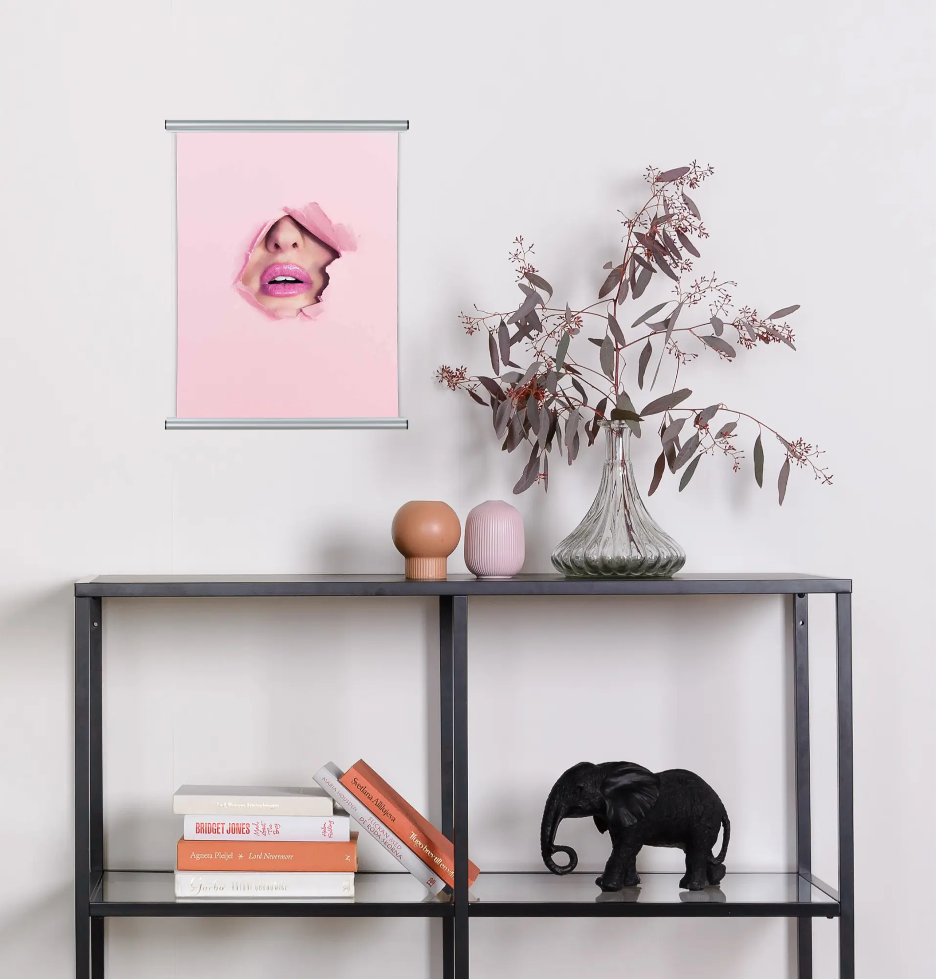 É bonito e fácil pendurar os seus pósteres em suportes de póster que combinam com a decoração. Este design atemporal é da marca dinamarquesa Ørskov & Co e está disponível em prata e preto. Este tamanho específico é adequado para pósteres com largura máxima de 70 cm.