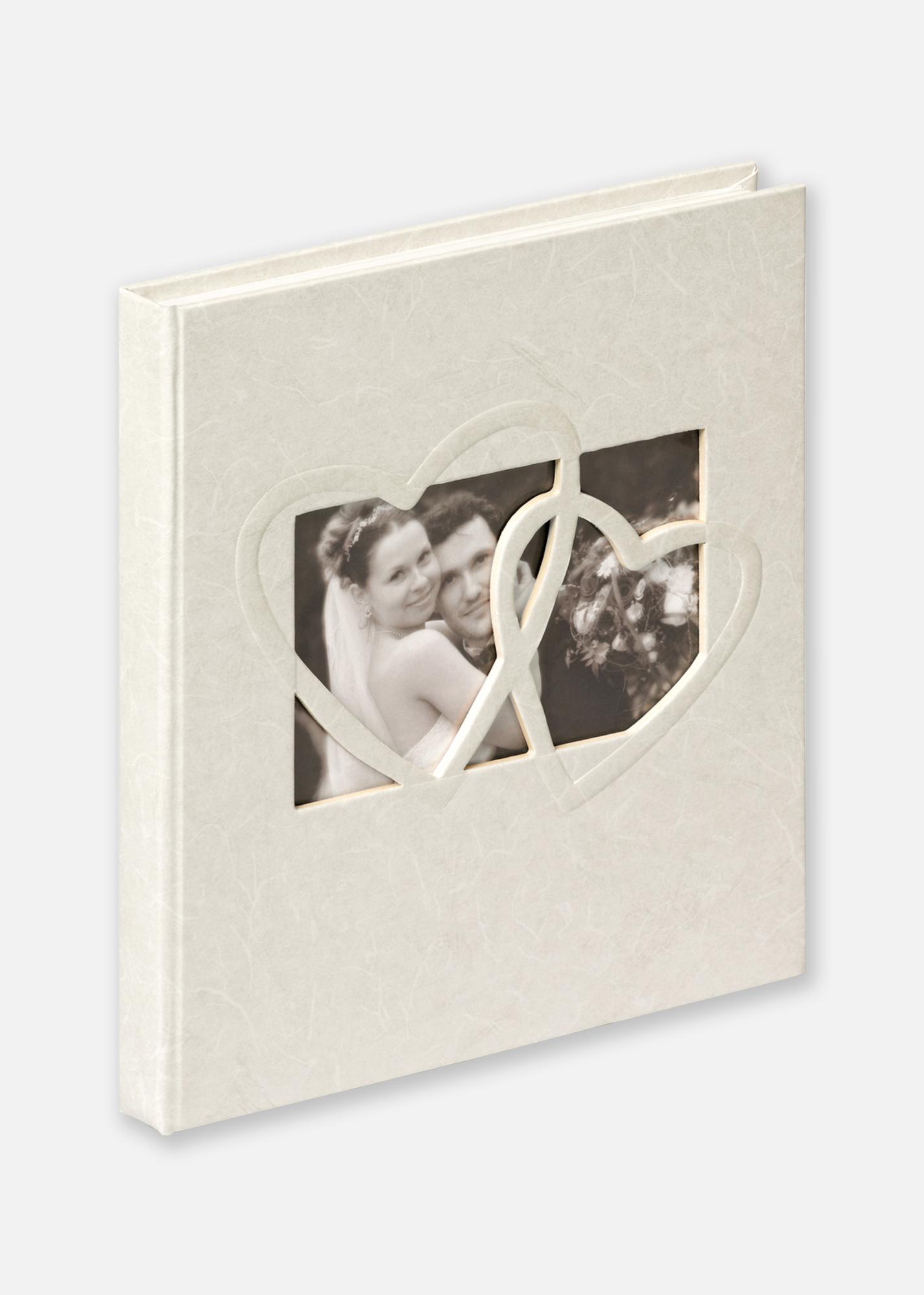 Livro de visitas romântico para o casamento com capas de linho bonitas com padrões em relevo em forma de coração. Na frente, também há espaço para uma imagem própria.