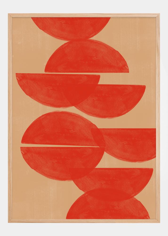 Este cartaz vibrante e cativante constitui uma expressão ousada com suas semicírculos sobrepostos em uma paleta de vermelho-alaranjado profundo. O motivo, de natureza geométrica, repete semicírculos em uma ordem quase rítmica, criando uma sensação de movimento e dinâmica no fundo calmante bege. É uma impressão que oferece um toque contemporâneo e foco energético a qualquer ambiente em que se encontra.