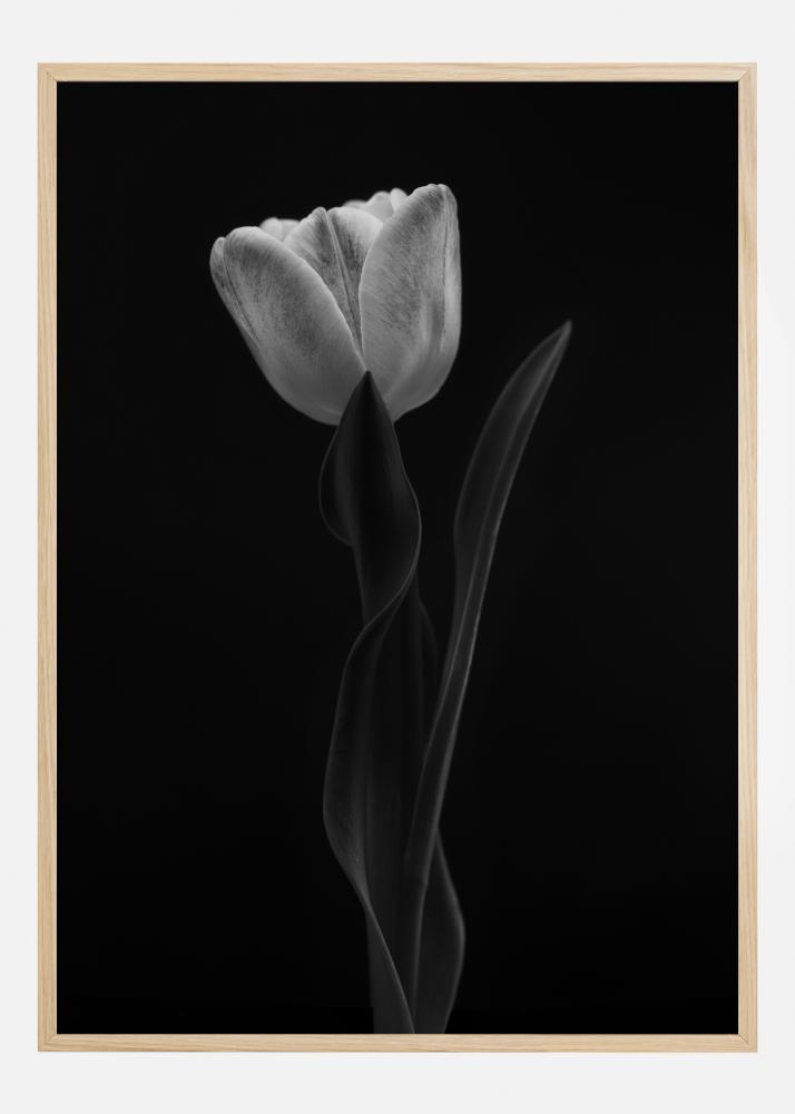 Um simples póster de natureza com uma única tulipa branca num fundo preto. Dê ao seu lar um toque de elegância ao pendurar essa impressão numa parede de cor simples para destacar a flor.