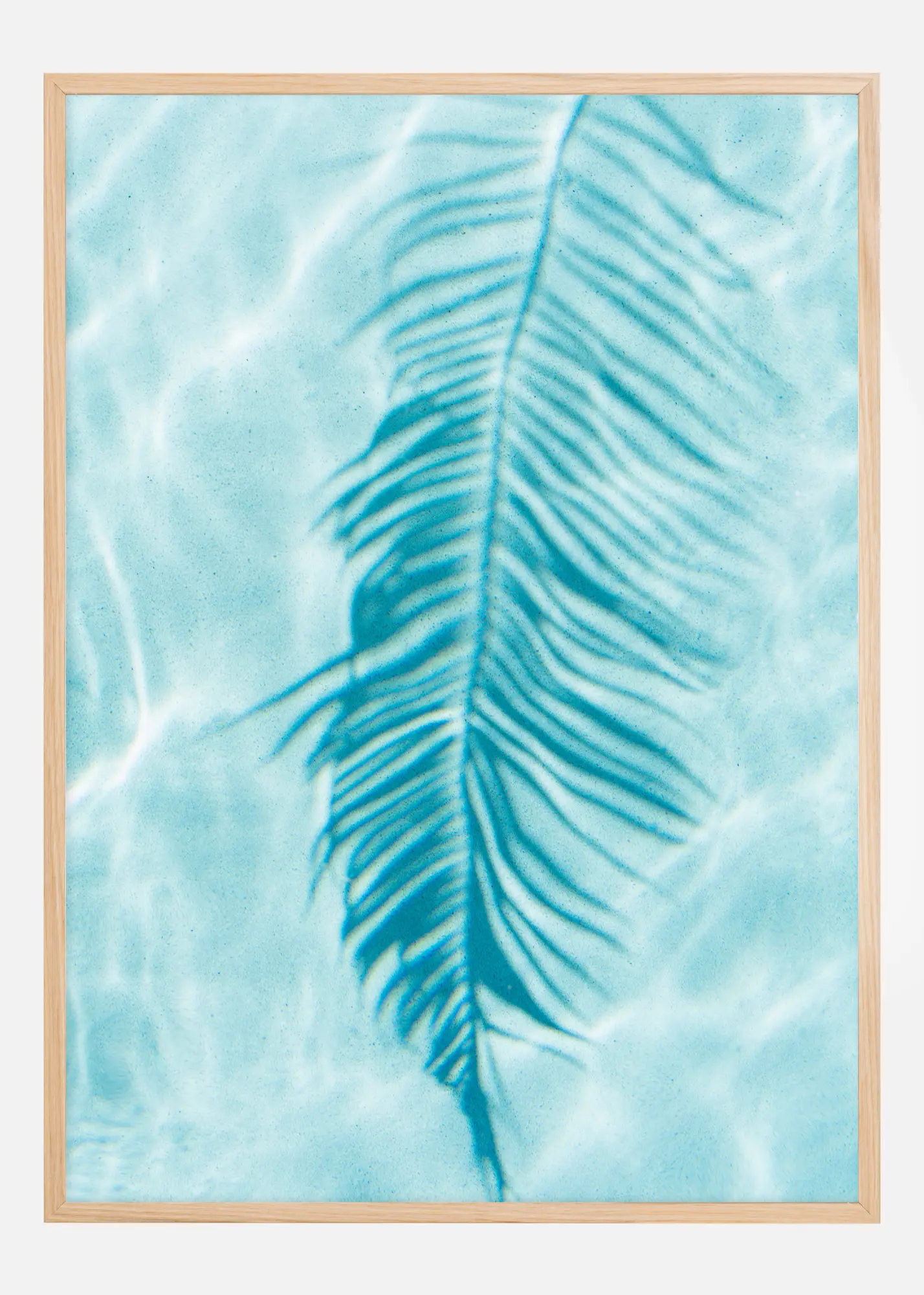 Este pôster calmante apresenta um motivo de uma folha de samambaia cuja sombra cai sobre um fundo azul-turquesa suave, que lembra água clara. Ele proporciona uma sensação de paz e uma simplicidade repleta de beleza e natureza. A forma pura da folha, combinada com a sombra nítida e a cor tranquila, cria uma atmosfera de relaxamento e quietude meditativa.