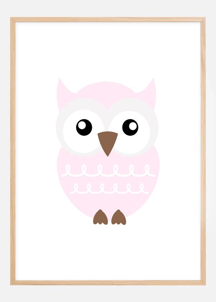 Poster bonito com o número um do interior, a coruja. A ilustração de uma coruja rosa-rosa estilizada num fundo branco tornou-se um clássico moderno. O design se encaixa tanto na sala de estar quanto no quarto das crianças e combina especialmente bem com uma decoração que destaca a cor da imagem. Combine com outras aves ou animais para uma sensação selvagem.