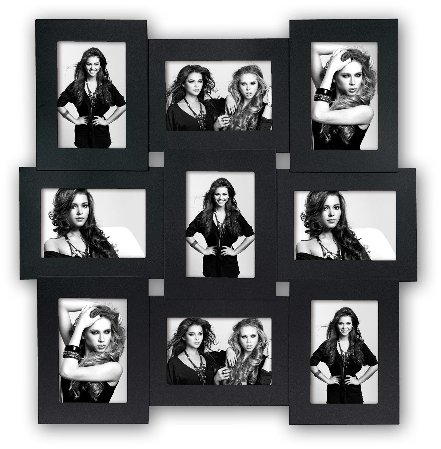 Moderno colagem em preto com espaço para 9 fotos em formato paisagem e retrato. Faça seu pedido hoje e crie sua própria colagem de fotos no fim de semana!