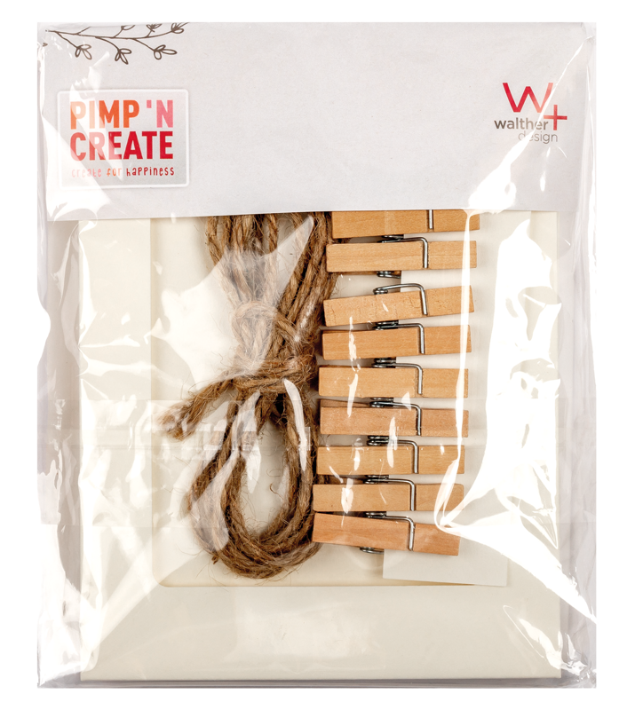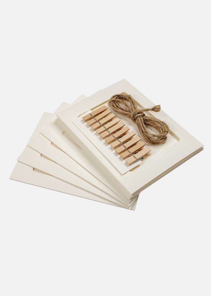 Guirlanda de fotos com 10 molduras de papel em tons de bege, para fotos de 10x15 cm. A guirlanda tem um comprimento de 180 cm e 10 pregadores de madeira para fixar no barbante de juta. As molduras de papel são sem revestimento, o que permite que as pinte novamente ou decore como desejar.