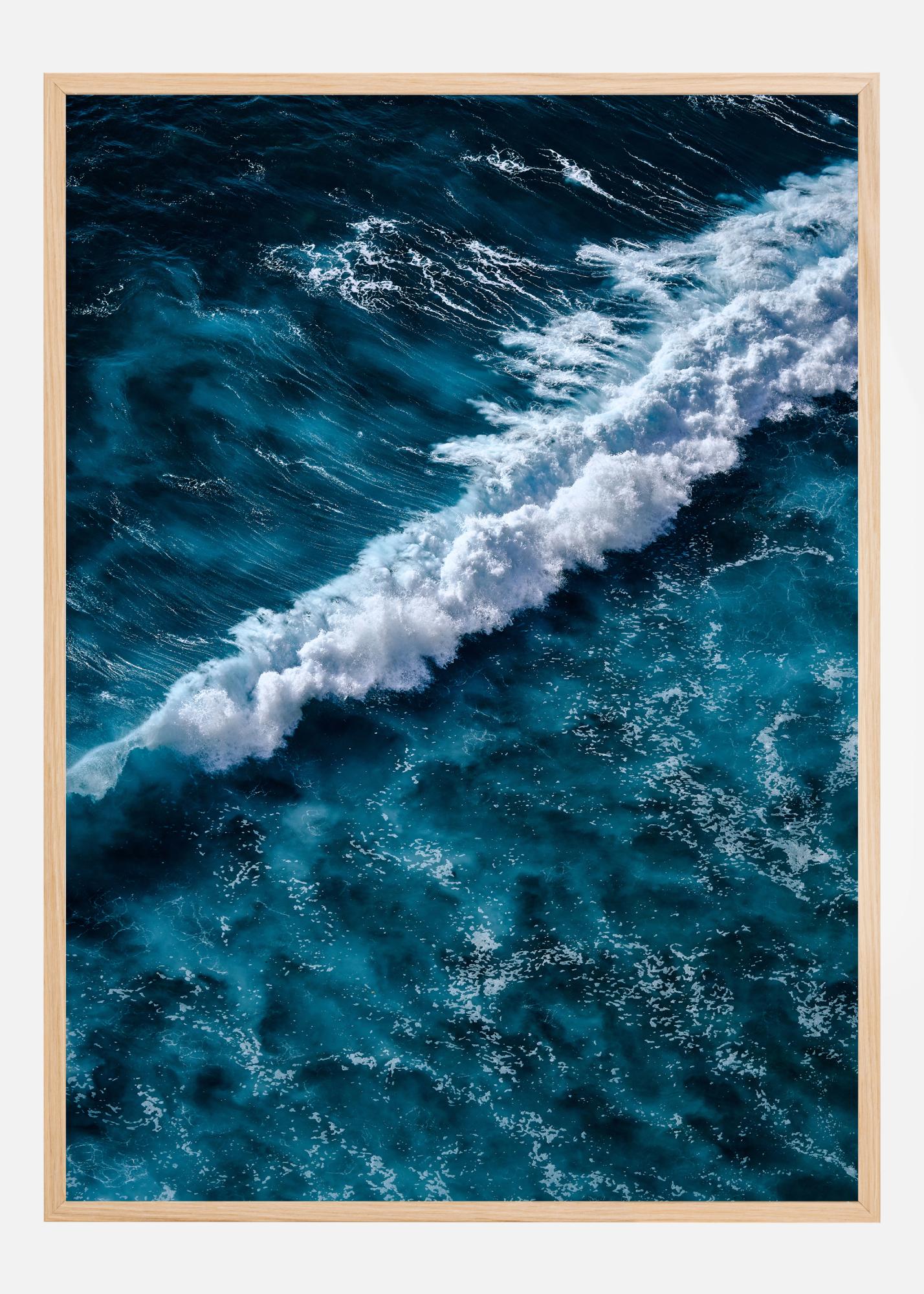 Este pôster dinâmico captura o poder majestoso do mar em um instantâneo de uma onda quebrando. Com tons de azul marinho profundo e espumas brancas cintilantes, o contraste não é apenas impressionante, mas também cheio de movimento e vida. A superfície do mar, viva e mutável, captura o olhar do observador e o conduz através do ritmo natural e da dança da onda.