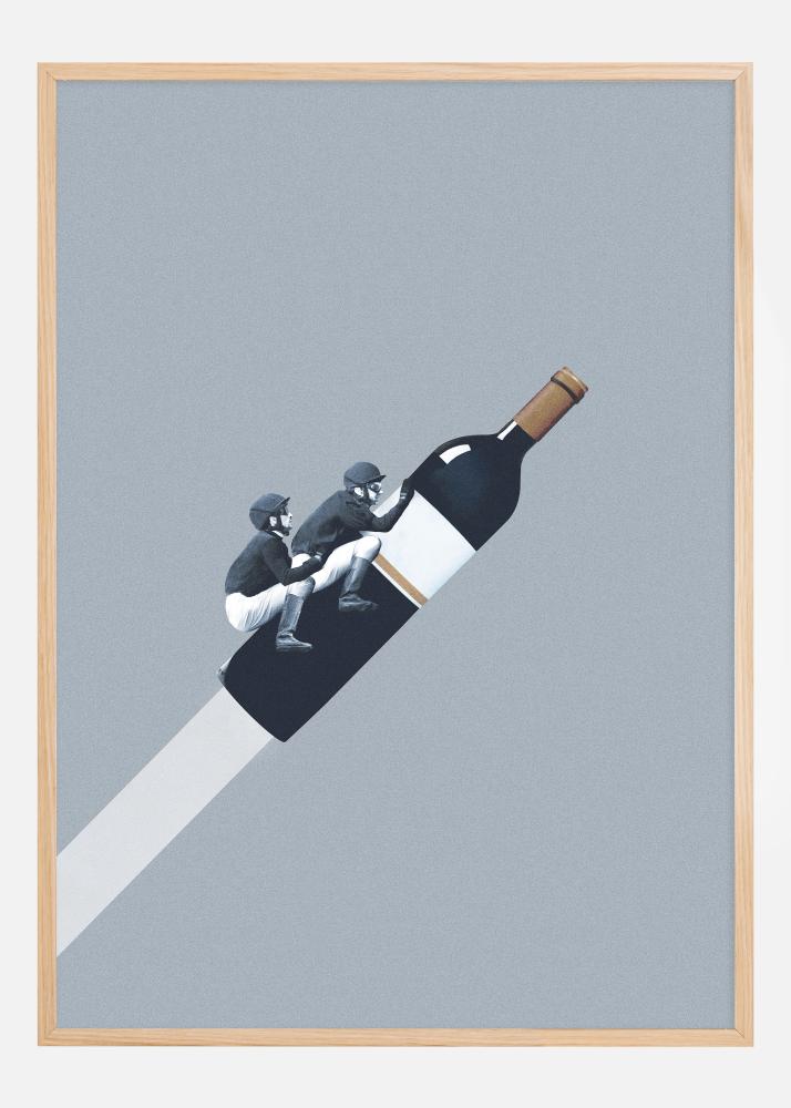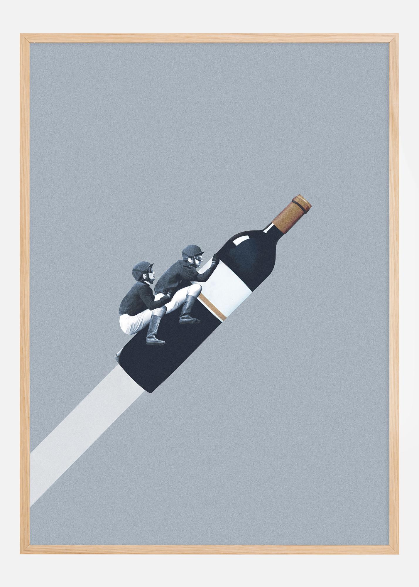 Este pôster único e instigante captura uma cena imaginativa onde duas pessoas em traje clássico de equitação cavalgam triunfantes sobre uma garrafa de vinho inclinada. A cena é uma obra de fantasia criativa que entrelaça o tradicional com o absurdo, e apresenta uma sensação de aventura e escapismo. Mostra como dois cavaleiros podem lidar com as ondas do vinho da vida cotidiana com a mesma graça e controle como se estivessem cavalgando através de uma paisagem ondulante.